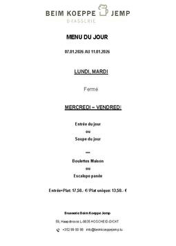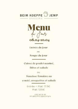 Häerzlech Wëllkomm an der Brasserie Beim Koeppe Jemp.