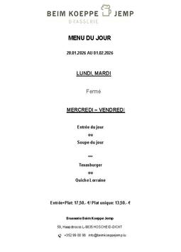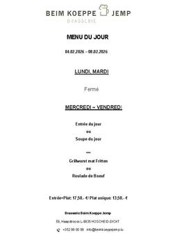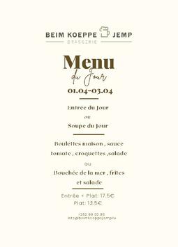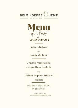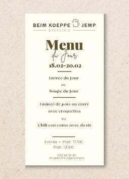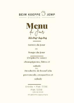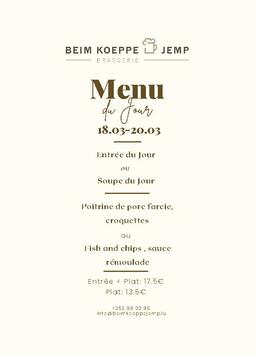 Häerzlech Wëllkomm an der Brasserie Beim Koeppe Jemp.